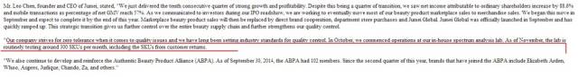 继续往下看,这就是重点了。聚美说,要继续扩大与第三方商家数量。到这儿基本能理解律师说的,你为毛没告诉我你要做自营?这里明明说是要扩大嘛。